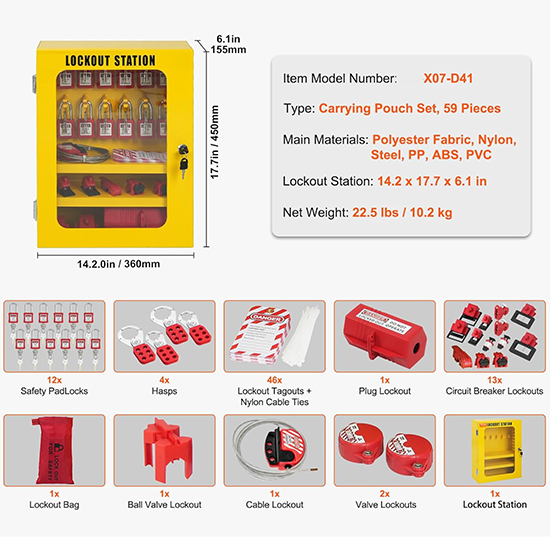 PROLOCKEY LK-X07-D41 là bộ Lockout Tagout (LOTO) điện dạng trạm treo tường, tích hợp đầy đủ ổ khóa, kẹp khóa nhóm, thẻ cảnh báo, dây rút, khóa CB, khóa van, khóa phích cắm và khóa cáp, giúp kiểm soát và cô lập hiệu quả các nguồn năng lượng nguy hiểm trong quá trình bảo trì – sửa chữa. Bộ kit phù hợp cho xưởng sản xuất, nhà máy, trạm điện, hệ thống cơ điện, tủ điện trung tâm, đáp ứng yêu cầu OSHA Lockout/Tagout và nâng cao tiêu chuẩn an toàn EHS.