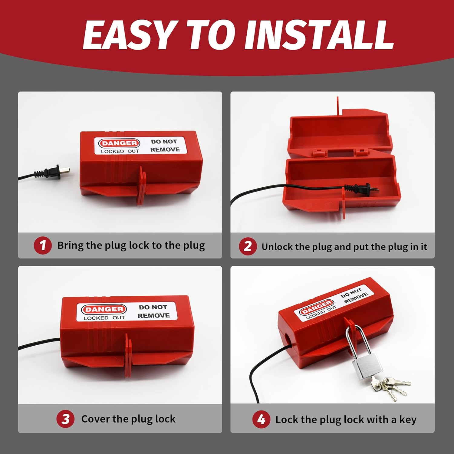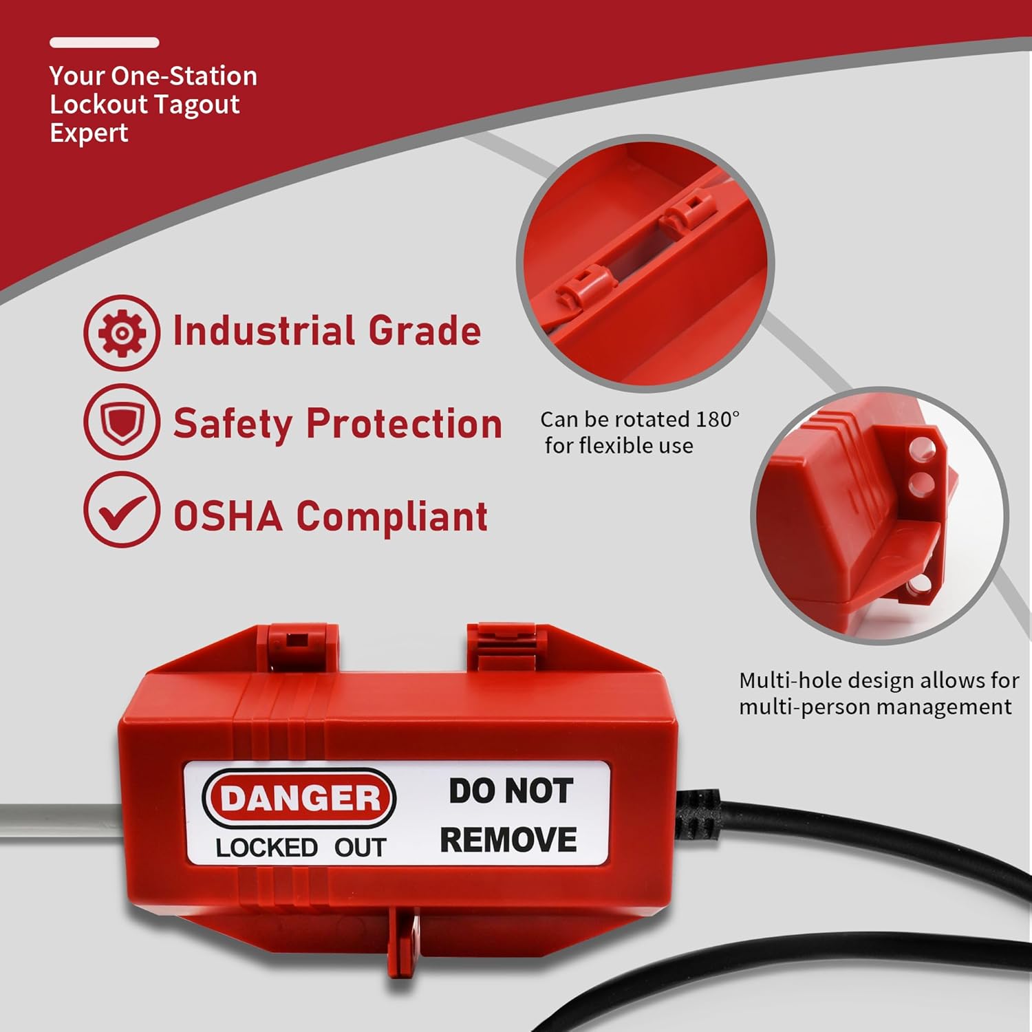 - Cảnh Báo An Toàn Rõ Ràng : Nhãn cảnh báo “Danger Locked Out Do Not Remove” (Nguy hiểm bị khóa, không được tháo ra) được in nổi bật trên đầu phích cắm, với màu đỏ rực rỡ, giúp nhân viên nhanh chóng nhận biết và tránh xa khu vực nguy hiểm. Đây là một yếu tố quan trọng trong việc đảm bảo an toàn lao động.