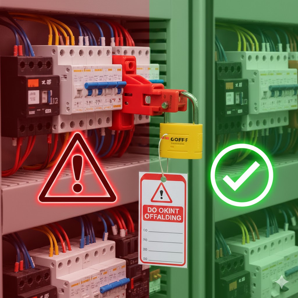 Lý do phải thực hiện Khóa & Treo thẻ an toàn cho MCB Việc chỉ đơn giản gạt MCB sang vị trí "OFF" là chưa đủ để đảm bảo an toàn. Hành động này không có tác dụng bảo vệ nếu một công nhân khác, do không biết đang có hoạt động bảo trì, vô tình gạt nút bật trở lại. Việc tái cấp điện ngoài ý muốn là nguyên nhân hàng đầu gây ra các chấn thương và tử vong do điện tại nơi làm việc.
